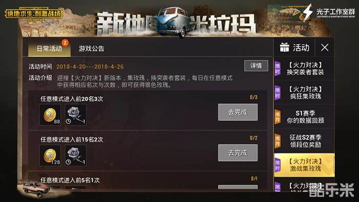 随新版本推出的【火力对决】系列签到活动,为玩家送出降落伞等更多礼品,每日登录游戏,玩家即可在活动页面中领取奖励,还可获得大量的【银色玫瑰】道具。【银色玫瑰】可用于兑换突袭者套装、高级时装礼盒以及天天刺激金币宝箱等道具,玩家可以根据自己的喜好选择任意喜欢的道具。此外,每天与好友开黑、完成每日任务等,也可获得大量的【银色玫瑰】兑换海量金币和道具!