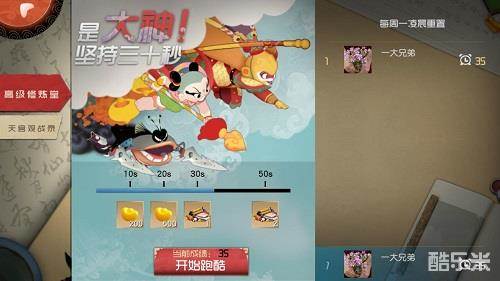 2)加入跑酷元素。《闹闹天宫》设计了“闹闹学院”模块,内有跑酷玩法,玩家进入游戏后,需要马不停蹄得奔走,避免被4个游戏AI角色追赶围攻,而能坚持三十秒的玩家,可以说是“大神级别”,那坚持一分钟岂不是“超神”了?通过趣味性“跑酷”小游戏,让玩家能够强化操作走位,也是很有心了。