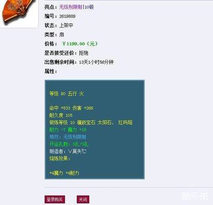 这把80级的扇子,初始命中232,初始伤害284,敏捷+13,耐力-4。伤害挺高的,比起来非人造的80环装高了几十点,命中有点略低,不过这个属性已经十分的出色,打上10锻玛瑙,也是482的命中,284的伤害,总伤444。在69级中,这个总伤绝对是比大多数的简易装备要强的,肯定是会有玩家愿意买的。虽然有减属性,不过减的不是很多,可以略微的忽略掉,而且还加了13的敏捷,也是十分不错的。