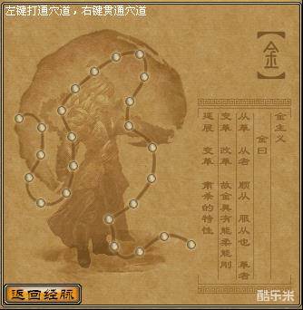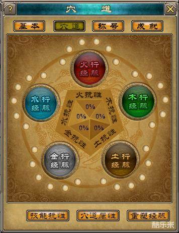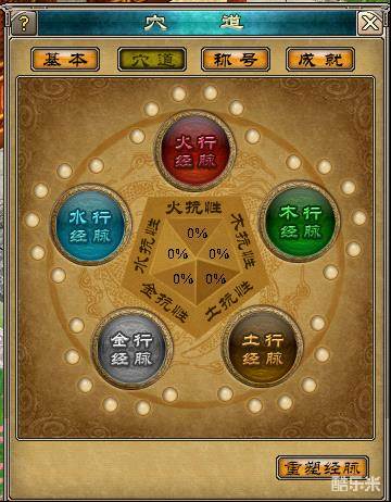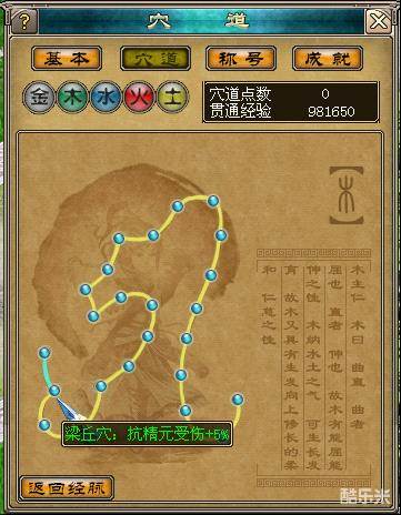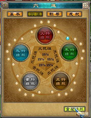 3.每个五行穴道的基本属性一致。但各个五行穴道贯通后的属性加成有所不同。穴道一览表