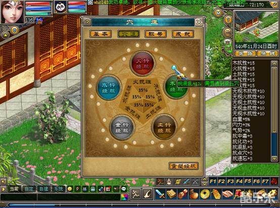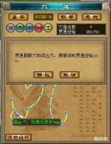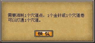 3.选好了自己喜欢的五行经脉后,左键点击相应穴道,即可打通穴道。打通穴道需要消耗一个穴道点,同时需要1枚金针或者1个穴道卷。