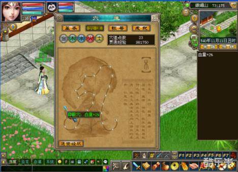 4.成功打通穴道后,打通的穴道会亮起,并有属性加成。(游戏界面右边,小地图下方有总览表)