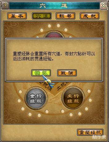 2.重塑经脉会重置所有穴道,同时返还所消耗的穴道点,通过使用道具还可返还所消耗的穴道贯通经验;但打通穴道时所消耗的金针或穴道卷将不会返还。