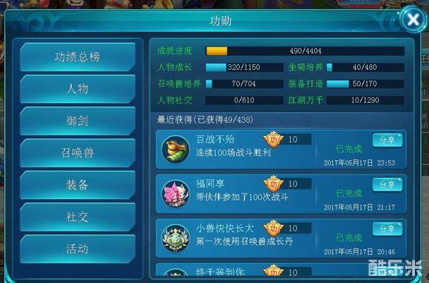 游戏里我们做的每件事情,不管是人物、宠物、坐骑、装备、活动及社交等等方面都事无巨细的一一记录了下来!每完成一项活动,我们都可以获得相关的成就称号,并获取功勋值。功勋值还能在NPC“刘掌柜”处换取稀有道具。在我们的每个举动中,游戏都自动为我们记录并默默给予着奖励。