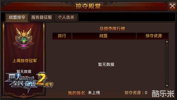 既然有赛季划分,自然就少不了与赛季相对应的排行榜内容,在《全民奇迹MU》3.0大版本跨服掠夺战系统之中,掠夺殿堂共分为战盟掠夺排行榜、服务器征服排行榜与个人击杀排行榜三大榜单,数据将在每轮活动结束后更新。换言之,在每一次入侵或防守的战役之中,勇士们的鲜血与雷鸣,都将被记录在案,成为与服务器荣耀共存的永恒丰碑。