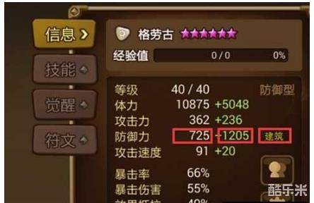 一、该技能是以防御力的“总值”为比例,就是“绿字+白字+建筑的总防御”为一定比例。