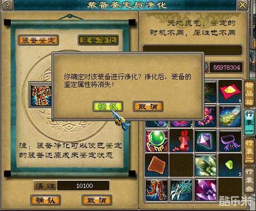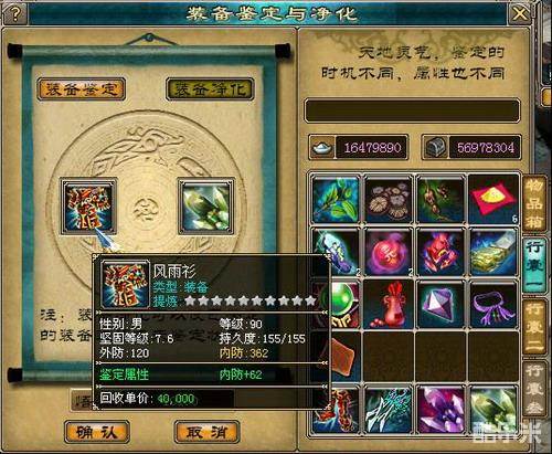2.放入相应的鉴定石对装备进行鉴定(低于装备等级的鉴定石不可以鉴定高等级的装备);