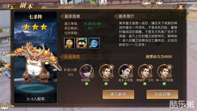 《轩辕传奇手游》高收益副本的正确通关姿势之一:七杀阵