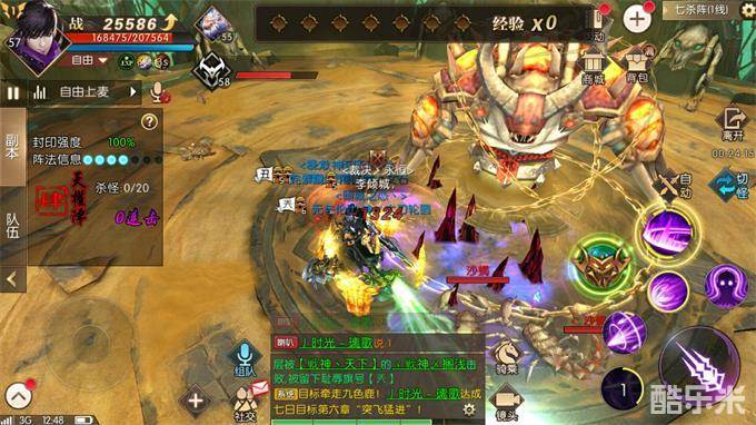1.打七杀之前,队长要跟队友做好协调,让队员关闭群攻技能,全部换成普通攻击,这样便于集中火力击杀昆仑奴,避免群攻的范围伤害分散击杀目标,影响打出高倍数连击。作战的时候队长可以开启跟战模式,效率更高。