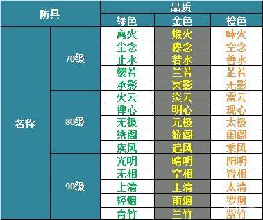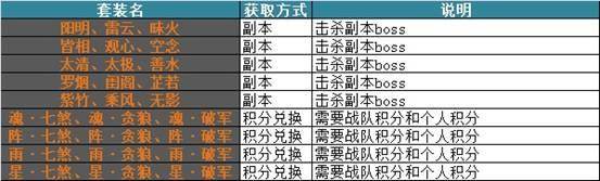 | 防具 | 阳明、雷云、昧火、圣尊 | 戮战 |