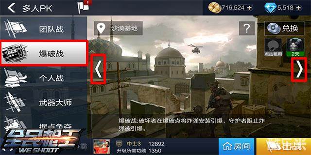原本5v5的枪法pk,在多了一颗炸弹(C4)之后,便发生了翻天覆地的变化,今天,就由小编来带领大家一起体验《全民枪王》多人pk爆破模式的腥风血雨吧!点击进入多人pk模式之后,选择爆破战,再挑中自己中意的地图,就可以开战了!