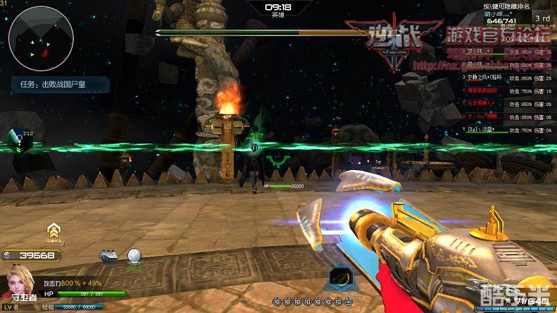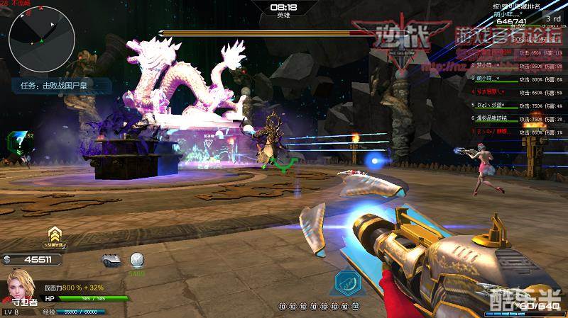 在两次四龙冲击完事后我们就需要靠前站了,不仅是方便打头,关键是地图边缘要有小怪连着激光带出现了,所以我们得靠前点,免的小怪一出来就把我们秒杀了,边缘每根龙柱都会出一只小怪,打掉一只与其相连的绿色激光也会消失,不要让小怪靠近boss,听说会回血来着……