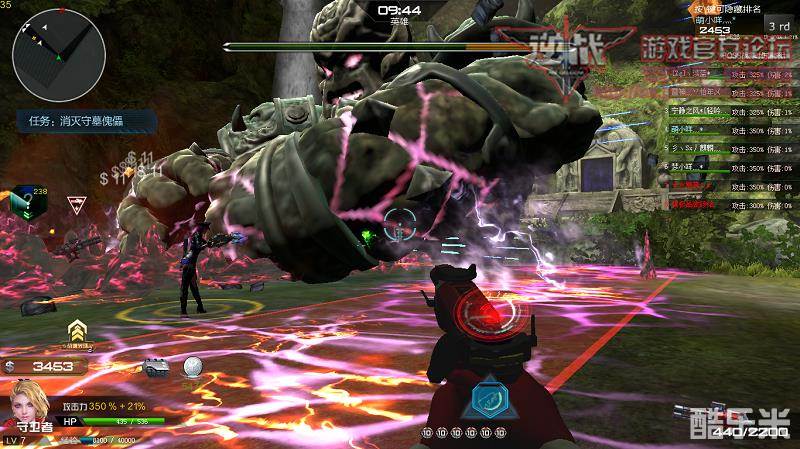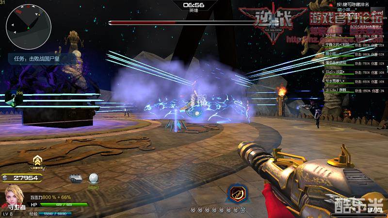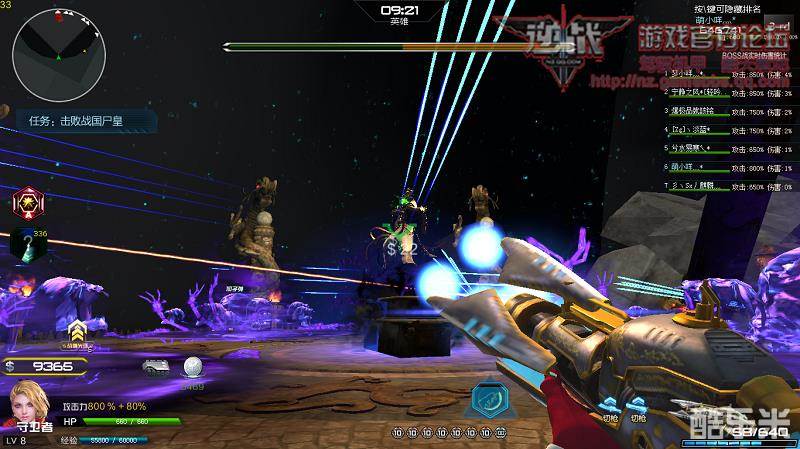 鬼手放完了就可以靠近 boss了,站在boss下面穿他的头,当然死神原子就不用靠近了,注意不要撞上棺材,会秒杀。当看到一道紫气冲天而起时就要打棺材了,纪元直接拿榴弹连 boss带棺材一起炸,在棺材血条打空前,会每隔几秒放出一道紫黑色的光圈,碰到就秒杀,不过蹲下就没事了,麻烦的是万一你蹲下躲光圈的时候始皇刚好锁定你冲刺,那就完蛋了,所以要尽快打掉棺材。