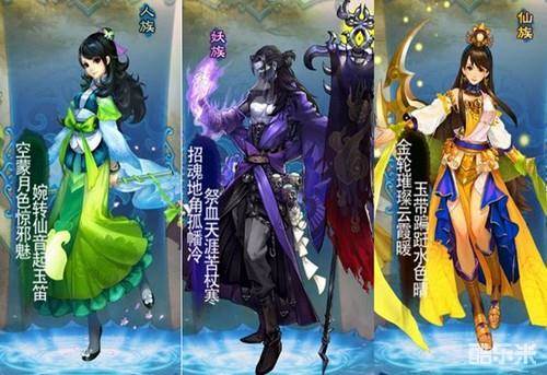 游戏内卡牌分成三个种族:人、妖、仙;