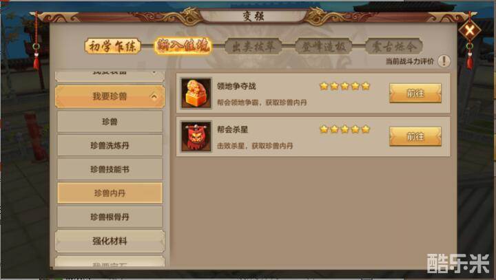 附体珍兽大家应该都知道获取途径。高星二代珍兽可以自己繁殖或交易商会中购买。游戏中内丹是比较珍贵的道具,可以在商会和拍卖中获得。也可以在藏宝图玩法和大型帮派活动中获得,少侠们可以根据需求进行选择。