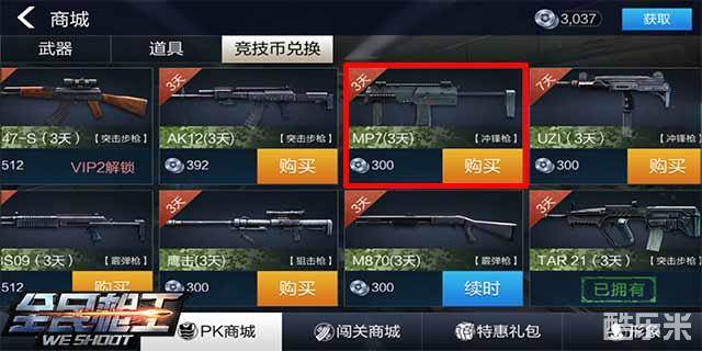2.商城花费300竞技币获得3天的使用权。