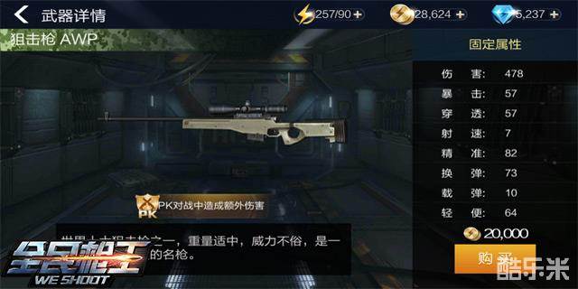 这把AWP毕竟是为新手练习而提供的,所以在购买上是花费游戏内钱币:金币,这在游戏属于合理,毕竟这种枪属性不强,只为玩家们服务一段时间,只要大家大致熟练了就会换用其他的狙击大展身手。