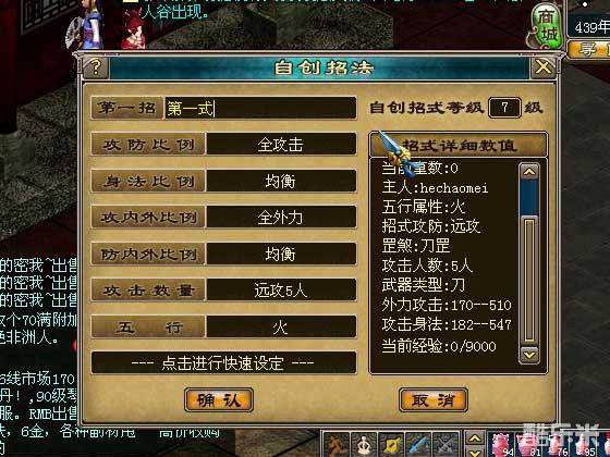 在一套招中只能有一招攻5和一招攻4,攻1~3的可以有多招,自创一套招中只能有一招攻击数量为5或4。各门派的调节数值不同。