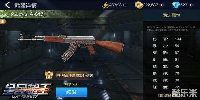 AK47是AK47系列中的一把新手级别的枪械,它的存在同样是让一些新手玩家来来适应这款游戏的自由移动模式及AK47系列的枪械。当然这只适合刚接触这个游戏的玩家。这把枪的售价只有两万金币,作为一把最基础的枪这个价格还是很合理的。