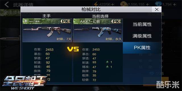 赋予傲梅灵魂的AK47当然且必然列于神器之位。它与老牌神器AK47-幻影相比,属性在射速和精准上都比幻影略低。这点上幻影压了一头,毕竟是老前辈,属性上肯定高,不然不合适。