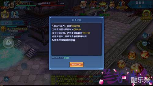 洞天平妖每天会提供给您1个小时的时间进行刷经验活动,可如果你刷了一会儿就有事要离开,剩下的时间怎么办呢?《兰若情缘》已经为你考虑好了。只要你推出当前副本,洞天平妖的计时会自动暂停,直到您下一次进入才继续开始计算。但需要注意的是,每天0点,洞天平妖会重置,所以请您务必在0点前把宝贵的一小时十倍经验拿到手啊!
