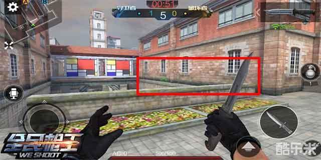 如果我们是进攻方怎么达到快速的突袭中桥从而配合B通的队友进攻B点的效果呢?有一个捷径是小编自己无意发现的,这是一个跳点,需要多多练习,熟了之后就可以快速的跳上中桥进攻B点。