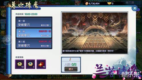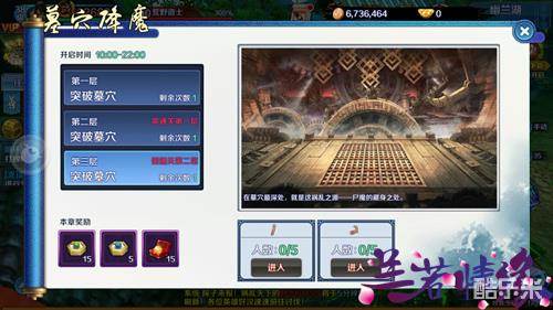 墓穴共有三层,每突破一层才能进入下一层。随着不断深入,你也将会发现墓穴最深处的秘密,并得到最丰厚的奖励。