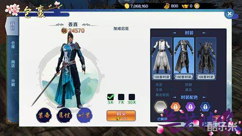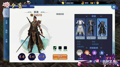 在角色正下方的按钮里,除了可以查看您的基本信息,还可以看详细的属性。此外最拉风的功能,就是时装的购买与装备。每个职业都有多款不同风格的时装,而每一款时装又都有不同的配色。想要解锁时装和配色,不仅只是有钱就可以,还请各位大侠自己探索吧。