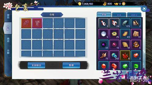包裹功能不仅仅只是用于收纳,还展示了角色的基本信息,并提供类似存储、买卖等基础功能。在收纳功能上,除了限时你当前所有的物品外,还可以通过分类标签分别查看装备与消耗品。一键整理,可以帮你更清晰直观的查看自己当前所有的东西。此外,随着你角色的成长,你将会收获越来越多的奖励,背包栏位会随时间逐个免费开启。你也可以通过消耗一些元宝,一次性打开你所需数量的栏位。