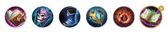 最强出装:嗜神之书+痛苦面具+秘法之靴+极寒风暴+不死鸟之眼+贤者之书(贤者的庇护)