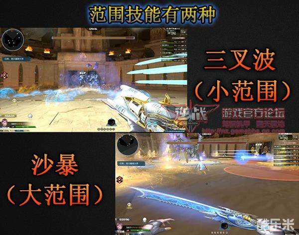 自然魔蝎大帝也拥有着范围技,不过其射出的三叉波有效覆盖范围较小(从图中可以看出),所以对于玩家们来说威胁不大,但玩家们不要因此小瞧这个技能,毕竟伤害还是有的,万一被击中就只能躺尸了。而沙暴则是一个大范围的攻击技,释放此技能时场中会不时的出现沙暴区,玩家一旦停留在沙暴区域内就会持续掉血(伤血的速度还是蛮快的),而且场上的沙暴区域此起彼伏,玩家们躲避起来比较困难。