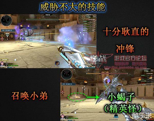 至于魔蝎大帝的冲锋技就没有什么好说的了,毕竟它的冲锋太过耿直(并不会追踪转弯),所以玩家们侧移即可躲避。召唤小弟这个技能召唤出的小蝎子们也不是什么龙套兵种(但小蝎子却是该图中的精英怪),所以玩家们在移动中需要关注小地图,千万不要被小蝎子偷偷靠近阴到自己。