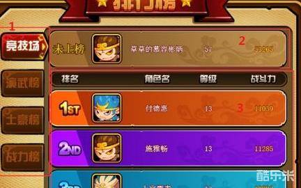 上图中的“2”和“3”部分分别显示玩家自己和其他玩家在排行榜的排名情况。