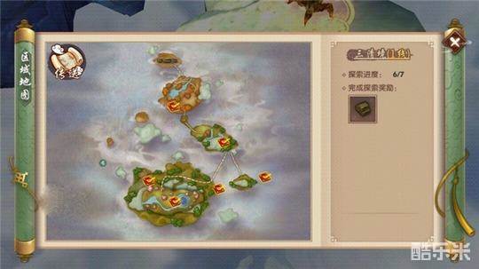 探索点7:在地图上我们是找不到它所在的岛屿的,它是在一个空中的小岩石上面,我们飞到地图的最左侧的下方,在这里我们会看到一颗岩石上面站着一只野外BOSS“树妖姥姥”,在它的一旁我们就可以看到最后一个探索点位了。