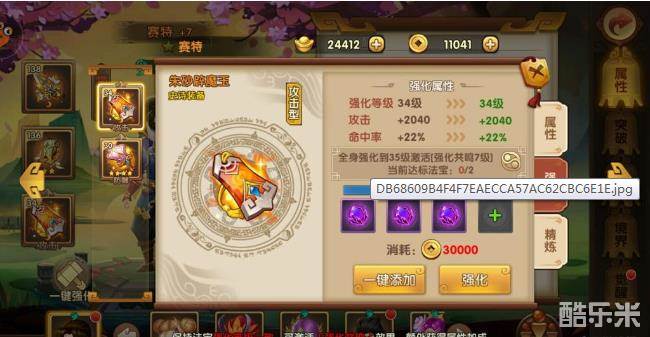 宝物强化不同于装备强化,强化到了30之后建议首先强化攻击宝物,两个同时强化到35需求资源太多,攻击至上就对了