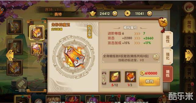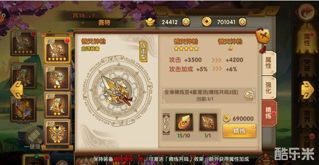 ps:这里考虑大部分玩家精炼石跟不上消耗,先精炼攻击,然后