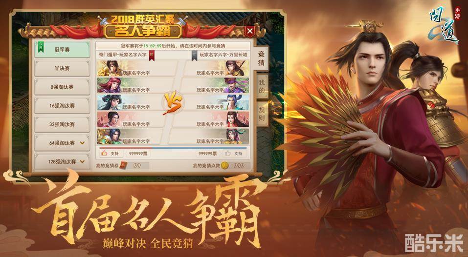 随着2周年庆典的开启,《问道》手游还将迎来首届名人争霸赛,名人争霸赛不区分等级段及赛区,不同于跨服试道、跨服战场等玩法,是一个全新的跨服PK类玩法,将给道友们带来更多元化的战斗体验,极大地提升游戏的可玩性。一场大乱斗将在楼兰城内开启,一个回合制手游的竞技时代即将到来。首届名人争霸赛将于4月28日开启报名,喜欢竞技的道友们千万不要错过。