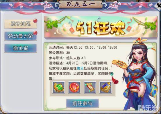 【活动描述】活动期间,每天12:00-13:00,18:00-19:00,玩家可以组队前往凌霄殿NPC【鲁班】处接取搬砖任务,赢取丰厚奖励。运送数量越多,奖励丰厚哦!