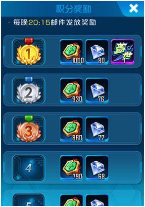 (ps:每天的晚上九点更新,奖励会根据排名发放到邮箱!加油上分吧)