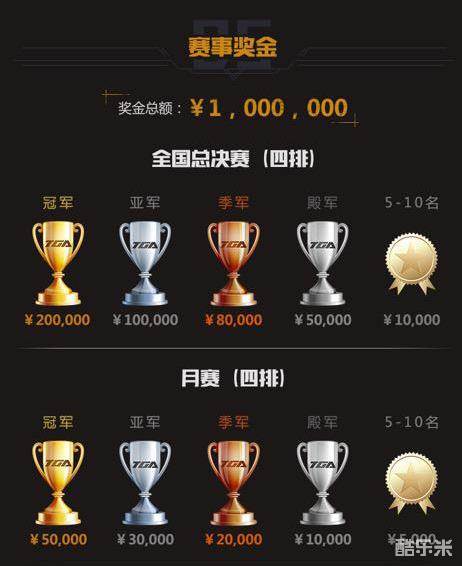 此次线下赛的奖金也是颇为丰厚,月赛冠军队伍将会获得5万的奖金,亚军和季军也可分别获得3万和2万的奖金!月赛中晋级全国总决赛的队伍将有资格争夺百万奖金!