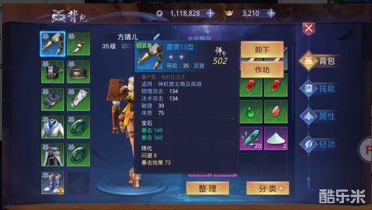 同时为了方便玩家操作,在背包的界面中,也可以点击装备直接打开作坊界面,完成装备的养成提升。