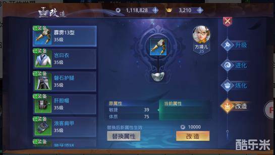 而装备改造则是将当前的主要属性替换改造,更为不同的是装备改造只需要消耗银两而不是稀有的材料,因此属于是福利性质的养成玩法哦~