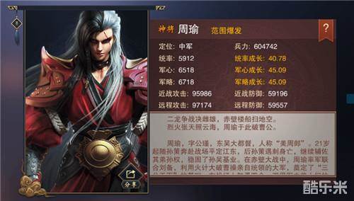 在阵容搭配之前,我们先来看一下周瑜的定位,既然是神将,周瑜的基础属性就毋庸置疑了,各方面都是极高,足以作为阵容培养的核心。周瑜的必杀技业火连珠取自于其火烧赤壁的典故,在战斗中放出一个巨型火球,对攻击目标造成持续伤害,并且还会对他施加DEBUFF,使他后续所受到的伤害也会持续增加。从周瑜的技能我们不难看出,周瑜的定位是群体攻击,持续灼烧,有了他,队伍便再也不怕缺少伤害了。