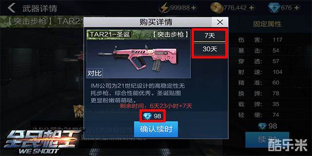 TAR21这把枪已经不知道在小编仓库存留了多久,直到TAR21圣诞出现,小编决定买来试试手。试用之前,小编将两把枪比较了一下,TAR21圣诞比普通TAR21的精度高了2点,载弹量多了5发,提升很明显啊。