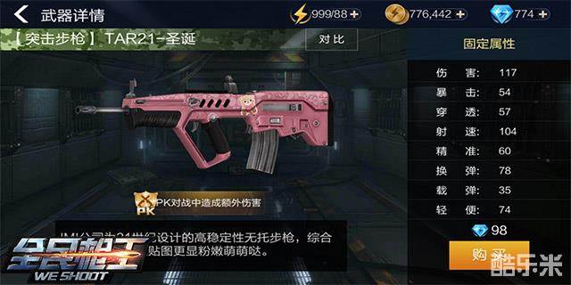 先从外表来说,萌萌哒的粉色系列,不仅符合了圣诞的愉快气息,更加给人一种温和的感觉;其次这把枪的稳定性要比较好一点,在远距离对射的时候不至于吃亏。