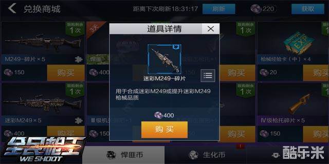 悍匪币兑换商城400悍匪币兑换5个碎片;