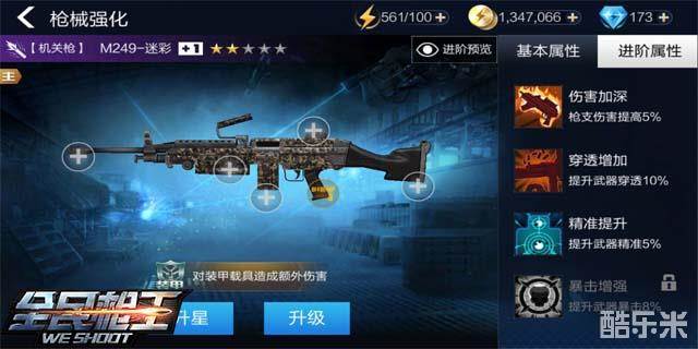 在升级、升阶、升星这三个培养方面所有枪械都差不多。但那么多枪械,这把枪该放到第几位来培养呢?在这里小编给大家说一下。虽然游戏中装甲出现的次数远比人类少,但在勇闯敌营和挑战尽可能的走的更远,这把迷彩M249仍是不可忽视的武器,所以这把枪的培养鹰该安排到第二或第三位,并培养到紫加一,再往高培养就以升星和升级为主。