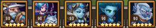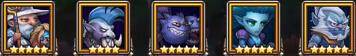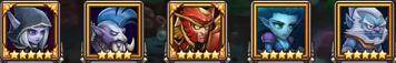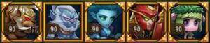 这个阵容在第一关中,如果猴子能够极限开出大招,把血量吸回来,就可以再次开出大招,运气好的话,死亡先知可以把牛头的大招沉默掉,第二关进场的时候暗牧和沉默开启大招,猴子、小黑能量一满也开出大招,之后用死亡先知收割术士。第三关,猴子、沉默、小黑、死亡先知依次开大,暗牧看猴子血量进行加血,猴子和先知再次有大招就开大,就能过了。这个阵容关键就在于猴子第一关中的极限开大。