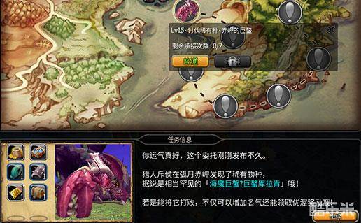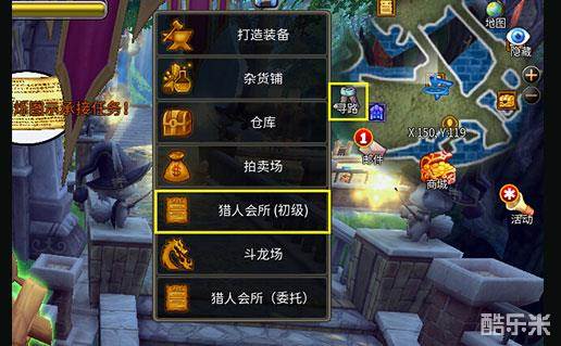 点击“寻路”按钮,之后点击“猎人会所(初级)”,角色会自动寻路至狩猎任务领取处