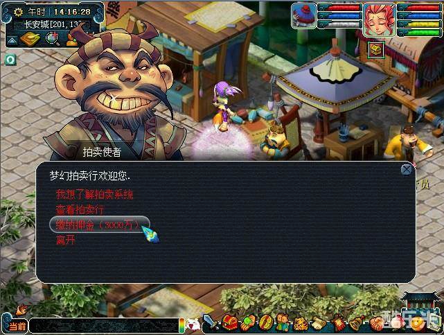 1、拍卖活动期间,前往长安城(205,12)的拍卖使者处缴纳押金(3000万两),开启竞价拍卖功能。